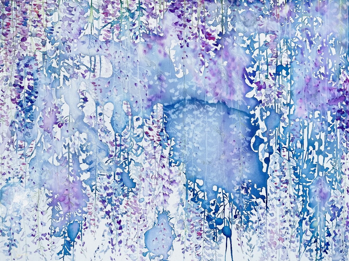 2|「藤」600×800mm 素材:キャンバス,アクリル, あられ, 技法:零度染™︎加筆/ Toyota Enterprise ICC 主催 ビルエレベーターアート入賞展示/愛知/2024