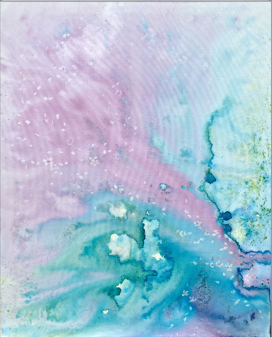 4|「花筏」1000x810mm 素材:キャンバス, アクリル絵の具, 氷技法:零度染™︎ 加筆/個展「Fleur de Givre」パリ/2024